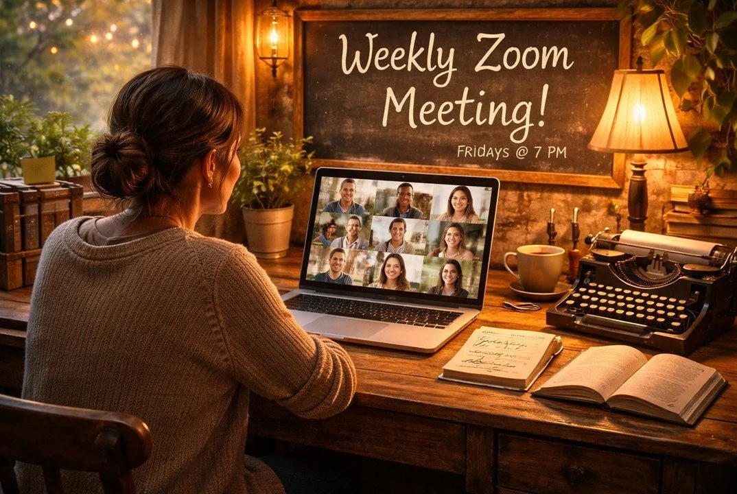 Join “Shut Up and Write’s” weekly free Zoom meeting—no prep, no pressure. Come to write, listen, or just feel less alone at your desk. Click the link to join us every Friday at 11:30 CST on Zoom.